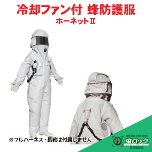 商品名 冷却ファン付 フルハーネス対応 蜂防護服【ホーネット】 セット内容 ホーネット(本体・フード・ファン×4個)/手袋/アクリル板/収納用バッグ/モバイルバッテリー(本体・ACアダプター・USBケーブル)/保冷剤×3個...