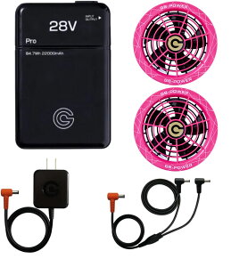 2025年モデル 国内メーカーGB-POWERのファン付きウェア用28V出力バッテリー+ファン(左右組)セット。日本のバッテリー製造メーカーなので安心の品質。15ヶ月間保証。