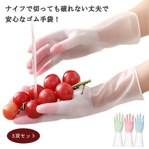 ナイフで切っても破れない丈夫で安心なゴム手袋!5双セット油やほこりなどの汚れがついていても洗いやすいです。靭性が良くて、引き裂きに強く、耐久性に非常に優れた家事用キッチングローブ。手へらと指先に滑り止め凹凸加工を施し、