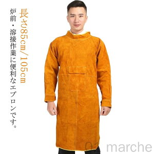 長さ85cm/105cm 炉前・溶接作業に便利なエプロンです。大きめサイズで柔らかい素材なので体の動きを妨げられることがなく作業に支障がありません。作業エプロンは上質なレザーで仕上がり、耐摩耗、防炎や飛沫防止などを備えるだけなく、