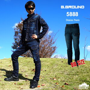 カラーデニム生地を使用したストレッチデニムのカーゴパンツ