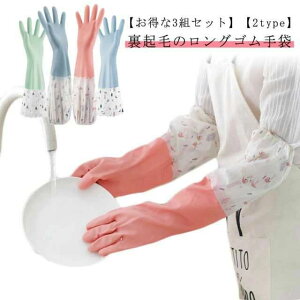 【お得な3組セット】【裏起毛のロングゴム手袋】【2type】機能性とデザイン性を兼ね備えたゴム手袋裏起毛だから装着時にヒヤッとしない手荒れを予防できます。シンプルでとっても可愛いです。お得な3カラーのセットでお届けロングスリー