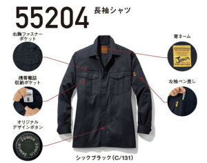 55900シリーズデザイン性と快適性を兼ね備えた、カジュアルテイストの作業服シリーズ!! ファスナーの配色や、斜めにきりあがった胸ポケットのエッジが効いた、シャープなデザインです。消臭&抗菌効果のあるDEO+テープやベンチレーションメ...