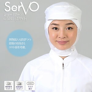 ショートフード (ホワイト) G5193 着用時の暑さを軽減する綿素材のショートフード。 額はパイル素材で落髪・ズレ防止と汗止めの効果。ツバとマスク掛けは洗濯に耐える織芯を採用。 頬と首周りは柔らかいトリコット素材、前部留め、後頭