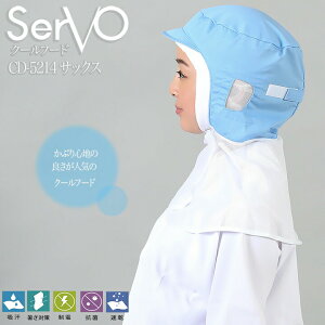 サーヴォ クールフード(サックス) DC5214 本体は接触冷感素材、ツバは洗濯耐久性の高い織芯を使用。 額と頬はパイル素材、落髪・ズレ防止と汗止めの効果あり。耳部とケープは通気性の優れたメッシュ。 前部留め、後頭周りはマジックテ