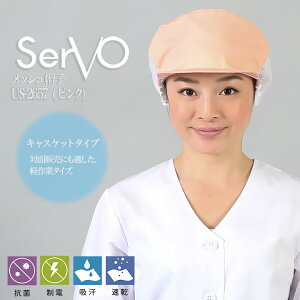 サーヴォ フード CD-590-D1 ツバは耐洗濯性の高い織芯。額はT400(TM)で異物落下防止、汗止め効果があります。 首はダブルニットメッシュ、前部留めはスナップボタン。 マスクは円掛け式、はさみ込み式メガネ差しを採用。<b