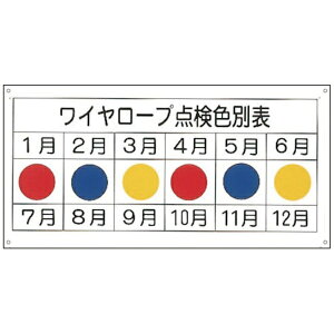 クレーン標識 ワイヤロープ月別点検色表 品番:804-91 サイズ:300×600mm 材質:鉄板(明治山)(穴4スミ) セット内容:板、ゴムマグネット(899-02) ...