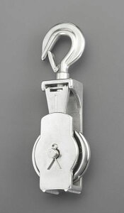 強力・堅牢な滑車。フック型は特殊鋼鍛造で、外れ止めが付いているので安全です。使用荷重:動滑車/0.5(トン) 定滑車/0.25(トン)車径:75MM 溝幅:12MM