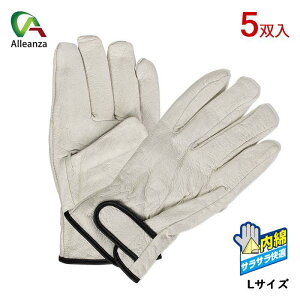 インナーの綿布でムレや手荒れを軽減【特徴】・最高級豚クレスト革を厳選し使用・内綿やわらか革手・インナー綿布付きでサラサラ感覚・夏は汗を吸収、冬はあったか【仕様】・5双入り・色:ホワイト・サイズ:L・素材:[本体]豚革/[内側]