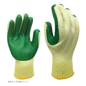 【仕様】使いやすい湾曲形状により、抜群のフィット感の手袋。重作業にも対応可能●色:グリーン●サイズ:フリー●寸法:全長/23cm、中指長さ/8cm●材質:手甲部/ポリエステル・アクリル・その他、加工部/天然ゴム●原産国:中国●