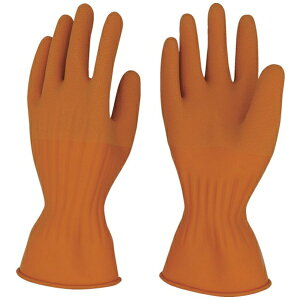 【仕様】 ●色:オレンジ ●サイズ:M ●全長(cm):27 ●手のひら周り(cm):21.8 ●中指長さ(cm):7.4 ●厚さ(mm):0.55 ●使用電圧(V):直流750/交流300 ●試験電圧(1分