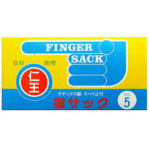 いております。 (内装袋は未開封となっております) 商品説明 「仁王指サック No.5細長 20本入」は、 ラテックス製の指サックです。滑り止め付き。