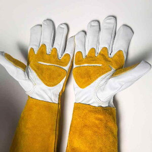 ・カテゴリ: 溶接手袋・用途: 溶接作業・主な素材: 牛革、羊革・カラー展開: イエロー、ホワイト、ナチュラル・特徴: マジックテープ開閉、ショート丈、ロング丈、掌部パッド付き、耳掛けタイプ