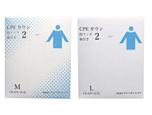 ファーストレイト CPEガウン2 Mサイズ FR-078 ●袖付きガウンは防水性があるポリエチレン素材のため飛散する血液、体液が非常に多い場合、感染リスクの軽減が図れます。 ●感染力が強いノロウィルスなど、患者様へ接触する場合、感染リ