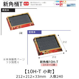 商品名 新角桶10H-T 小町 商品コード 0752614 外寸・深さ(mm) 212×212×33 ケース入数 240枚 袋入数 10枚 素材 HIPS(ポリスチレン) メーカー 福助工業株式会社 販売者 株式会社梶本 〜握り寿司の...