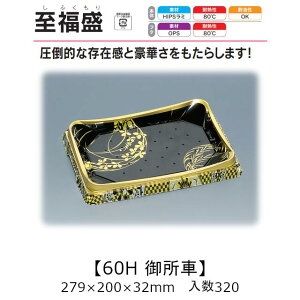 商品名 至福盛60H御所車 商品コード 0750042 外寸・深さ(mm) 279×200×32 ケース入数 320枚 袋入数 20枚 素材 HIPS(ポリスチレン) メーカー 福助工業株式会社 販売者 株式会社梶本 〜圧倒的な存在感...