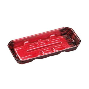 FU-22-10(25) 春慶赤◇食材がラップにあたりにくい深型タイプです。◇ラップ包装時の見映えが益々良くなりました。●本体:レンジ不可●材質:PSP●耐熱温度:80℃●サイズ:220×100×25mm●入数:50枚