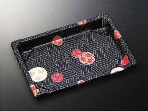 商品名 新角桶9H-T 鳳凰(紺) 商品コード 0752401 外寸・深さ(mm) 198×198×33 ケース入数 300枚 袋入数 10枚 素材 HIPS(ポリスチレン) メーカー 福助工業株式会社 販売者 株式会社梶本 〜握り寿...