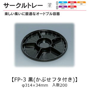 商品名 サークルトレー FP-3 黒(かぶせフタ付) 商品コード 0574406 外寸・深さ(mm) φ314×34 ケース入数 200枚 袋入数 20枚 素材 本体:HIPS(ポリスチレン)フタ:OPS(二軸延伸ポリスチレン)...