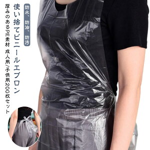 成人用/子供用防水、防油、防汚使い捨てエプロン 200枚セット軽くて丈夫な使い捨てビニールエプロンです。薄くて軽いフィルムのエプロンで、軽快で動きやすくサラリとした着用感です。後ろを紐で結んで着脱する...