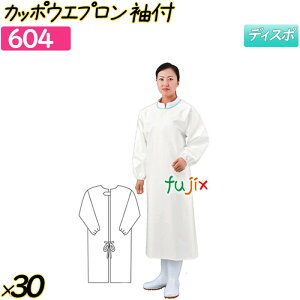604 カッポウエプロン袖付 ホワイトの商品説明 ディスポ(使い捨て)タイプ 袖付 長袖 エプロンです。 食品衛生法適合 材質:ナイロン基布に表裏ポリウレタンコーティング 入数:30枚(30枚) 1ケースで送料無料 ※ただし、北海道、沖縄