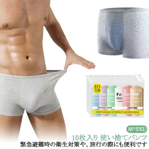 【10枚入】【男性用使い捨て下着】【L〜4XL】緊急避難時の衛生対策や、旅行の際にも便利です。旅行やドライブ、お泊まり、緊急時の備蓄などさまざなシーンに使うことができます。通気性に優れ肌にやさしく、旅行時にも重宝します。ぐん