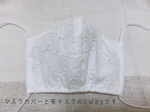 【商品説明】 マスクとしてもマスクカバーとしてもご使用いただける2way仕様です。夏らしくサークルレース生地でお作りしています。 マスクとしてご使用の場合、ゴムはちょうど良い長さで結んで調整してご使用くださいフィルターポケッ