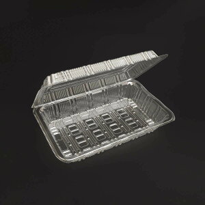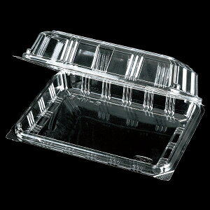 折り蓋式のフードパック。透明度の高いOPS素材使用。手切れ防止加工(セーフティエッジ)実施。