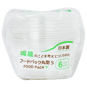丸型のフードパック、6個入りです。 環境のことを考えてバイオマス素材10%使用しております。 行楽のお弁当やおすそわけの容器としてご使用ください。 ※オーブン・オーブントースター・冷凍庫 非対応 ※電子レンジで使用する際には、必