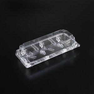 環境配慮25%バイオPET素材使用品。蓋・本体一対式容器。食パン耳無田形1/4カットサンドイッチサイズ感。ロールケーキ他製菓製パン向け。日本バイオマスプラスチック協会基準適合品。サイズ:190×85×49mm/材質:PET.bio/容...