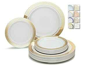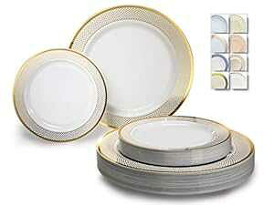 使い捨てデザイン:これらの使い捨てケータリングプレートは洗浄の必要がなく、忙しいライフスタイルや大規模な集まりに便利な選択肢になります。透明なディナープレート、金縁の透明なプレート 多目的使用: 甘いお菓子用の丸いデザートプレートやス...
