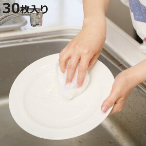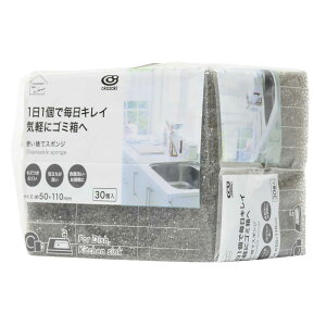 サイズ/約幅11×奥行5×高さ1.2cm 内容量/30枚入り 材質/ポリウレタンフォーム 生産国/中国製 耐熱温度/90度 ●キッチンをいつも清潔に使いたい方に最適の、使い捨てスポンジです。 ●30枚入りで毎日使