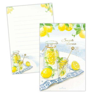 カワイイ手紙で大切な人に気持ちを届けようプレゼント/ギフト/はがき箋/文房具/メッセージ海辺のカフェ気分が楽しめるハガキ箋こちらは箔加工の可愛い[ハガキ箋]横罫入りの一筆箋が1柄8枚入新緑-初夏にかけて長くご利用いただける人気の