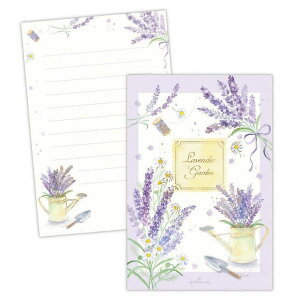 カワイイ手紙で大切な人に気持ちを届けようメッセージ/文房具/プレゼント/ギフト/はがき箋ラベンダーが彩るナチュラルなハガキ箋こちらは箔加工の可愛い[ハガキ箋]横罫入りの一筆箋が1柄8枚入新緑-初夏にかけて長くご利用いただける人気