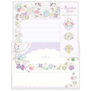 レターセット 手紙セット マーベラスパープルジュエリー 日本ホールマーク 便箋&封筒 かわいい メール便可手紙 デザイン レターセット おしゃれ デザイン メッセージ宝石に彩られた華やかなレターセットこちらはラメ加工がとっても可愛