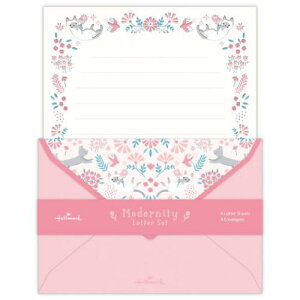 レターセット 手紙セット モダニティーレターコーラルレッド 日本ホールマーク 便箋&封筒 かわいい メール便可手紙 デザイン レターセット おしゃれ デザイン メッセージ猫xお花のモダンなレターセット...