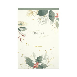 罫線あり・2柄各5枚●サイズ 148x100mm●森林認証紙使用セイヨウヒイラギが目を引くデザインのはがき箋。老若男女問わず使えて、冬の季節に大変重宝するアイテムです。お世話になった人へのお祝いやお礼、ご挨