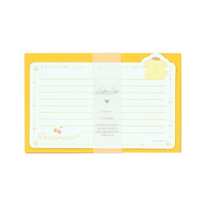ポムポムプリンのレターセットで想いを伝えよう☆金箔押しが華やか!便箋、封筒、宛名シール付き♪特別なメッセージを可愛く演出