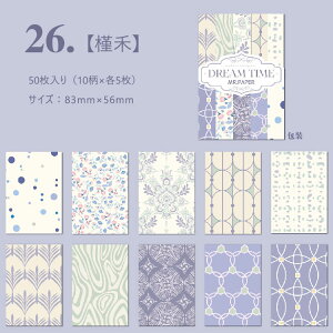 内 容:50枚入り(10柄×各5枚) 素 材:薄手ペーパー 軽型紙 サイズ:83mm×56mm 素 材:和紙 マスキングテープ素材