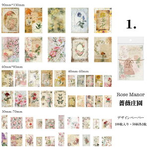 ! ⇒ 花柄 PETシール、半透明、耐水、ラージサイズ ⇒ デザインペーパー、背景紙、メモパッド 落ち着いヴィンテージ風セット、すてきです 海外コラージュ素材は日本にはなかなかないデザインが素敵...
