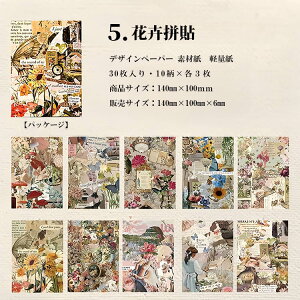 除く) 海外デザインペーパー、コラージュ素材セット! 海外紙もの、背景紙、便箋、メモパッド 華やか、薄手でコラージュに最適 内 容:30枚入り・15柄×各2枚 素...