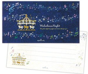 メリーゴーランドと音符のモチーフがメルヘンな一筆箋. 秋から冬にかけて使いやすい落ち着いたトーンのレターコレクション「コンフォート&ピース」。星図のモチーフやきらめく銀箔加工が、幻想的な世界観を引き立てる美しいデザイン
