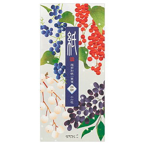 ●美しく色づいた4種の実がアソートされた便箋。 ●降りしきる雪の中で美しく色づいた4種の実(ナンテンギリ、ネズミモチ、センダン、アオツヅラフジ)がアソートされています。 ●やさしい肌合いの「越前和紙」を使用しています...