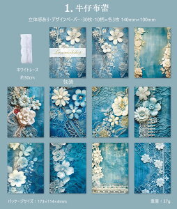 ◆平日16時迄のお支払いは当日出荷(土日祝を除く) 珍しい 立体感のある 素材紙セットです 海外デザインペーパー、背景紙、便箋、メモパッド 各セットに一枚ホワイトレース付き、約50cm 海外コラージュ素材は日本にはなかなかないデザイン