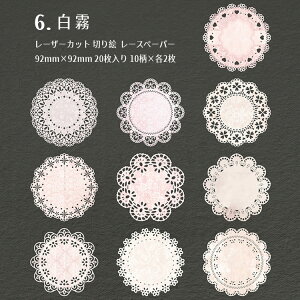 ◆平日16時迄のお支払いは当日出荷(土日祝を除く) おしゃれなレーザーカット 切り絵 レースペーパー 直径約92mmの大きめサイズ 背景紙としても、メモパッドにも◎ 海外 切り絵 コラージュ素材セット 内 容: 切り絵 20枚10柄入...