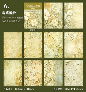 ◆平日16時迄のお支払いは当日出荷(土日祝を除く) 海外の素材紙ブック、コラージュ素材セット! レースペースの背景紙、全て使いやすい図柄 落ち着いたアンティーク調が素敵! 一冊30枚入り、10柄各3枚 150×150m