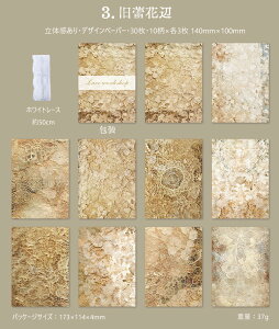 ◆平日16時迄のお支払いは当日出荷(土日祝を除く) レース模様、素材紙、背景紙、海外コラージュ素材セット ヴィンテージ風、落ち着いたアンティーク調でおしゃれ 縦140mmの大判サイズ、色んな場面で使えそう♪ コラージュ、手帳、日記、ア