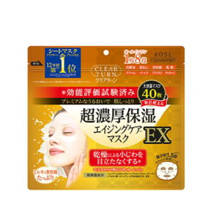 ※パッケージデザイン等は予告なく変更されることがあります。商品説明「クリアターン 超濃厚保湿マスクEX 40枚入」は、乾燥小じわ・毛穴を目立たせず、プレミアムなうるおいでふっくらやわらか肌に導く保湿パックです...