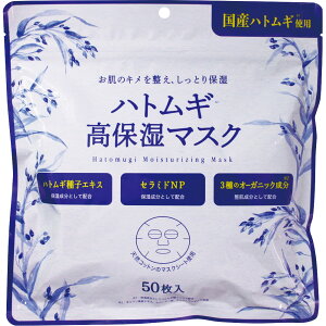 名 称 ハトムギ高保湿マスク 内容量 50枚 特 徴 ◆国産ハトムギ使用 ◆ハトムギ種子エキス・セラミド3・3種のオーガニック成分配合。