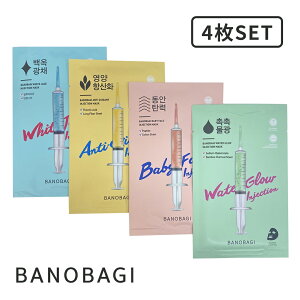 名称 BANOBAGI インジェクションマスク 4枚セット 商品説明 4タイプのマスクが各1枚ずつ入ったセット! ささやかなギフトやお試しにぴったりです。 【WATER GLOW】 ・荒れて乾燥した肌に水分と保湿をプラスする、うるツヤ...